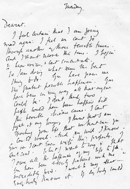 Virginia Woolf le deja una nota a Leonard antes de sumergirse en el lago Ouse…